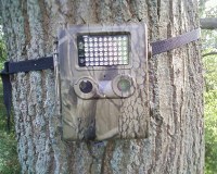 Die Kamera ist deutlich kleiner als die Moultrie und besitzt ein Gehäuse mit Tarnaufdruck. Die Auflösung der Kamera beträgt 5 Megapixel, tagsüber farbig und nachts schwarz-weiß. Ein üppiger IR-Scheinwerfer ist eingebaut und ein LCD-Schirm, welcher zur Programmierung und Voransicht dient, wurde auch nicht vergessen. Zusätzlich wird die Kamera mit LiIonen-Akkus betrieben, welche laut Vertreiber eine wochenlange Standbyzeit gewährleisten sollen.