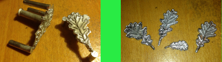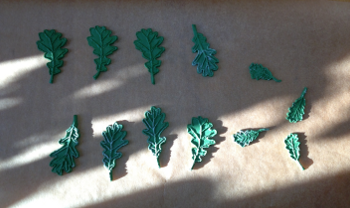 Derart motiviert ging es nun daran, Vorlagen für das Eichenlaub zu besorgen. Das heißt, besorgen kann man gleich vergessen und selber machen ist angesagt. Ich suchte also wieder im Internet nach Vorlagen, welche ich dann ausdrucken und aus Fimo ausschneiden wollte.