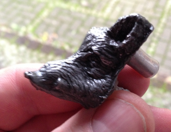 Zunächst habe ich das Haupt eines Plastikkeilers abgegossen (ist es eigentlich Schleichwerbung, wenn man Reklame für Fa. Schleich macht?), was überraschend gut funktioniert hat.